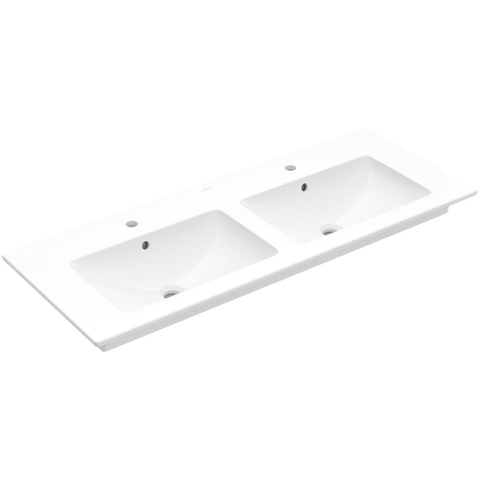 Villeroy & Boch Venticello Wastafel - 130x50cm - 2 kraangaten - overloop - ceramic plus - wit