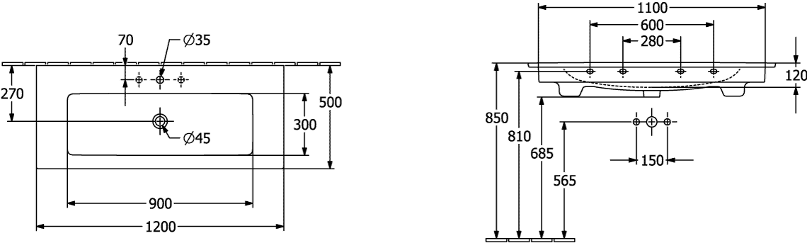 Villeroy & Boch Venticello Meubelwastafel - zonder kraangat - 120x50cm - overloop - ceramic - wit