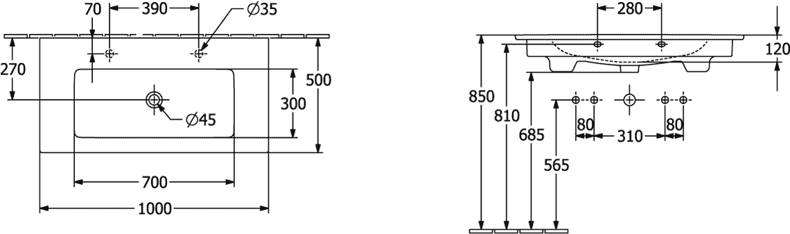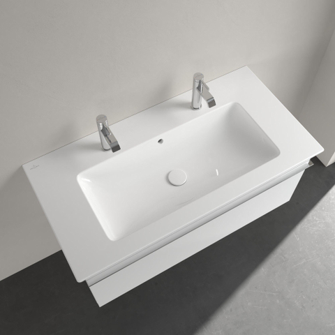 Villeroy & Boch Venticello Meubelwastafel - wasbak midden - 2 kraangaten - 100x50cm - overloop - ceramic+ - wit