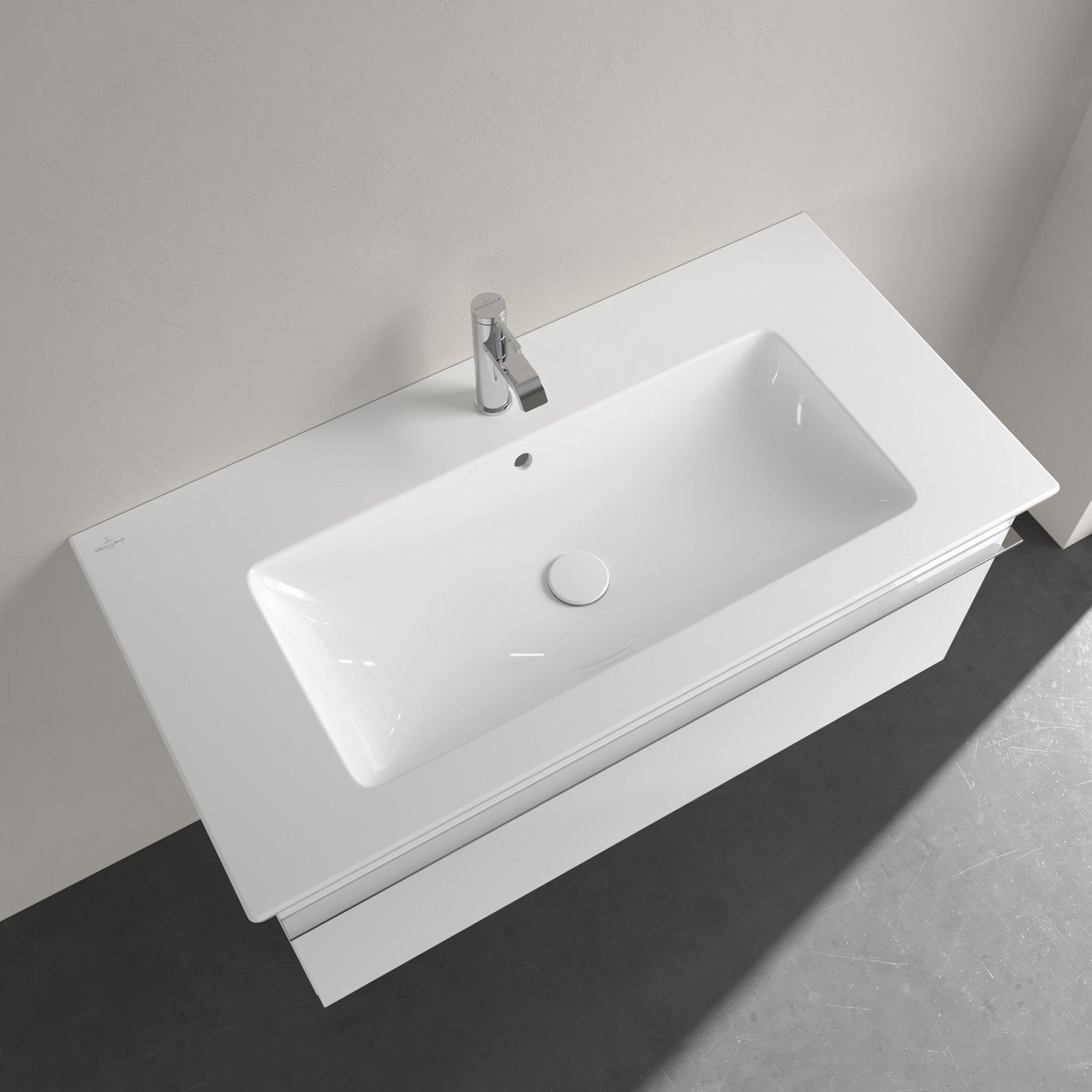 Villeroy & Boch Venticello Meubelwastafel - wasbak midden - 1 kraangat - 100x50cm - geschikt voor 3 kraangaten - overloop - wit