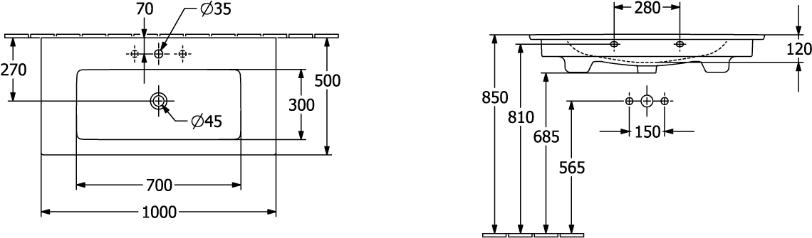 Met een afmeting van 100x50cm biedt deze wastafel voldoende ruimte voor dagelijks gebruik. Het ontbreken van een kraangat zorgt voor een minimalistische look en geeft je de vrijheid om een kraan naar keuze te installeren. De subtiele overloop voorkomt overstromingen en voegt een praktisch element toe aan het design.