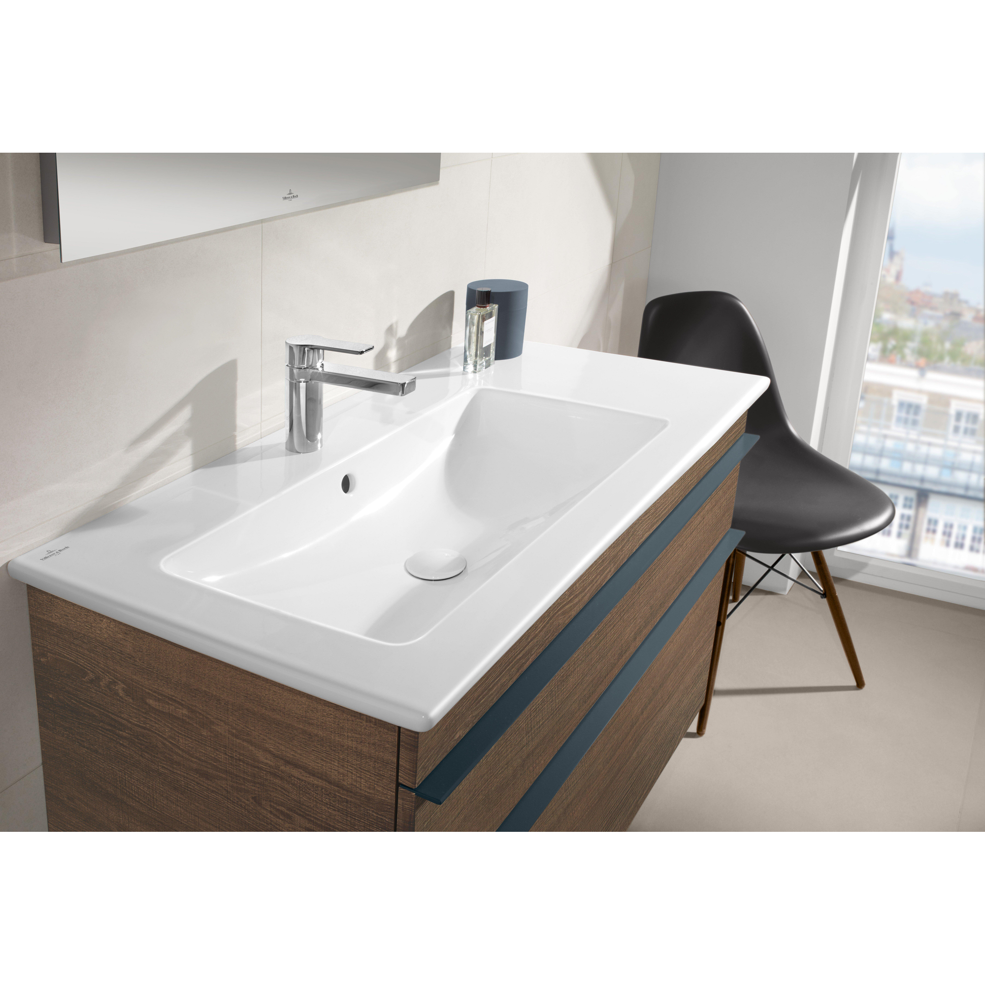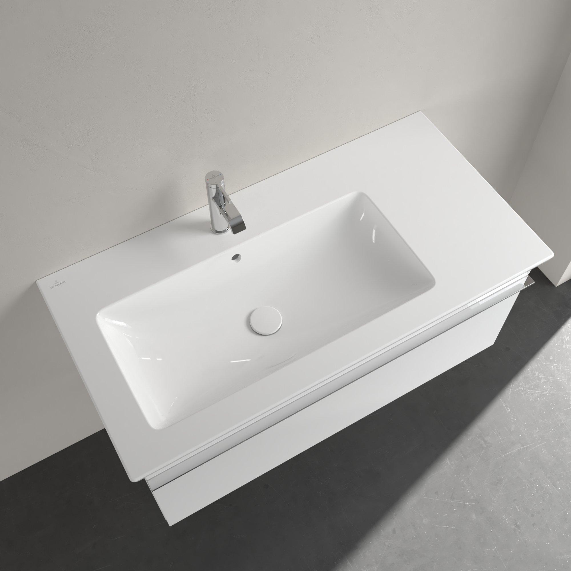 De Villeroy & Boch Venticello Meubelwastafel straalt stijl en elegantie uit. Het ontwerp is tijdloos en past perfect bij verschillende badkamerstijlen. De witte kleur zorgt voor een frisse uitstraling en de afmetingen van 100x50cm bieden voldoende ruimte voor dagelijks gebruik. De wasbak links geplaatst en met 1 kraangat geeft een symmetrisch en evenwichtig uiterlijk aan de wastafel.