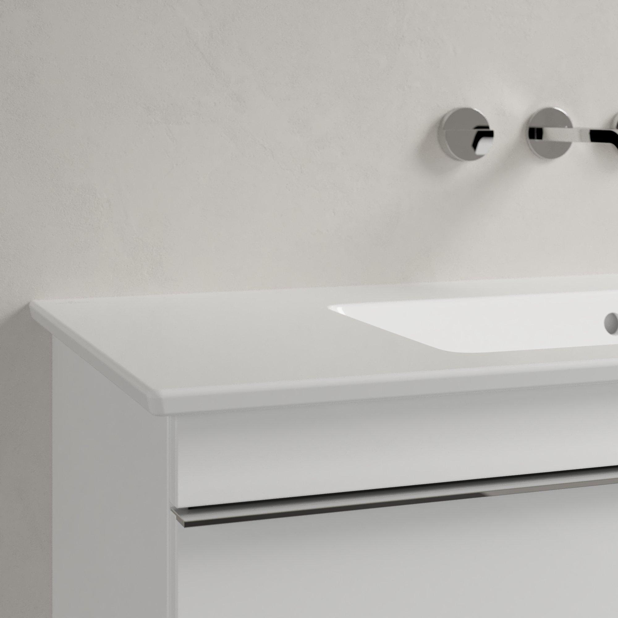 De Villeroy & Boch Venticello Meubelwastafel straalt moderniteit uit in elke badkamer. Het strakke ontwerp en de witte kleur zorgen voor een frisse en eigentijdse uitstraling. De rechter plaatsing van de wasbak zorgt voor een slimme indeling en maakt efficiënt gebruik van de ruimte. Deze wastafel is perfect voor wie op zoek is naar een eigentijdse en minimalistische look.