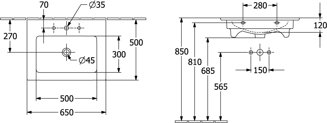Villeroy & Boch Venticello wastafel met 1 kraangat 65x50cm (geschikt voor 3 kraangaten) met overloop ceramic+ wit