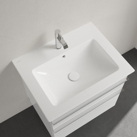 Villeroy & Boch Venticello wastafel met 1 kraangat 65x50cm (geschikt voor 3 kraangaten) met overloop ceramic+ wit 1025145