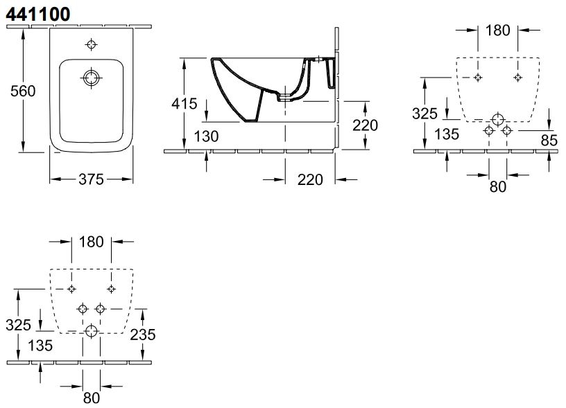 Villeroy & Boch Venticello wandbidet met 1 kraangat 37.5x56cm met overloop wit