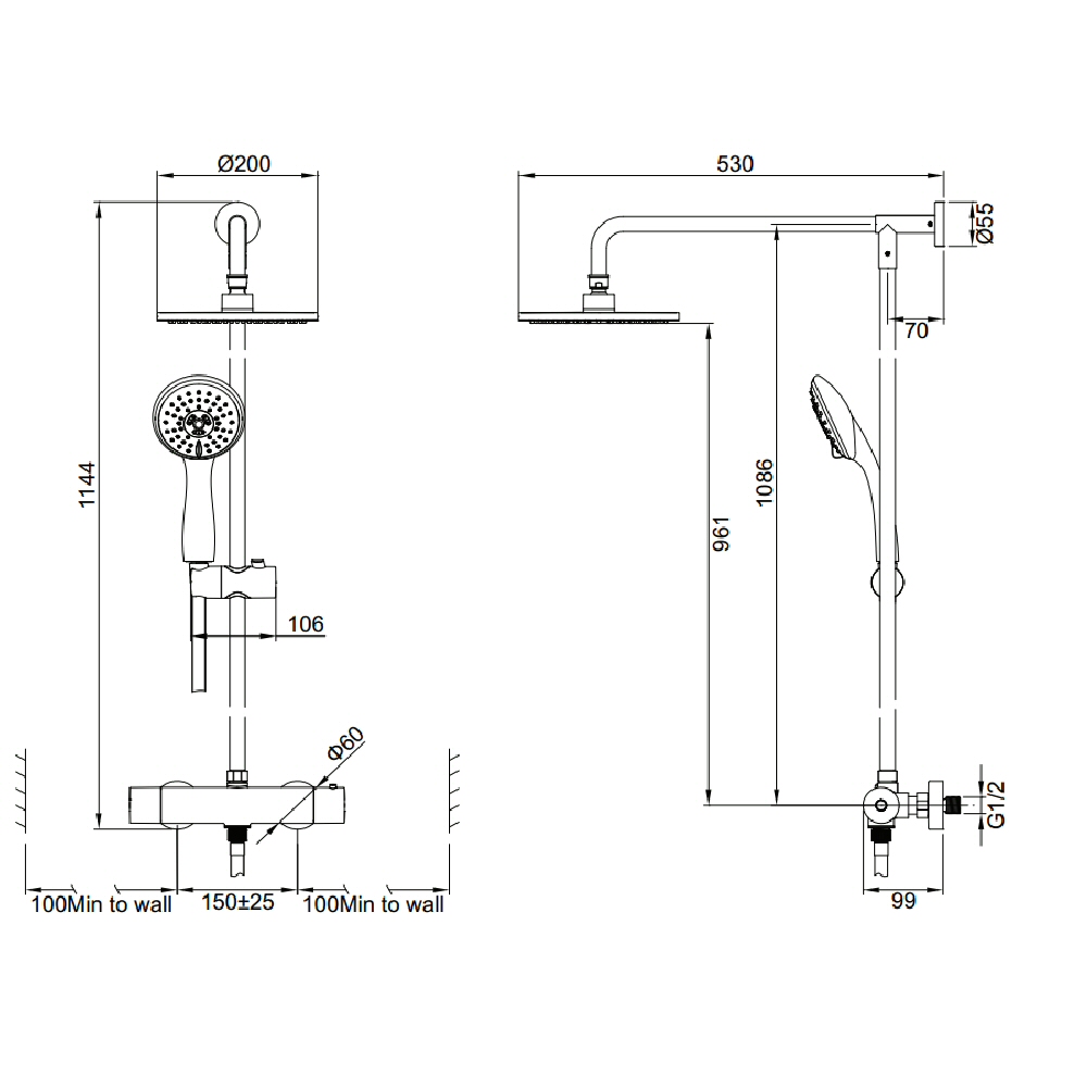 Crosswater Fusion regendouche thermostatisch met 3 standen handdouche chroom
