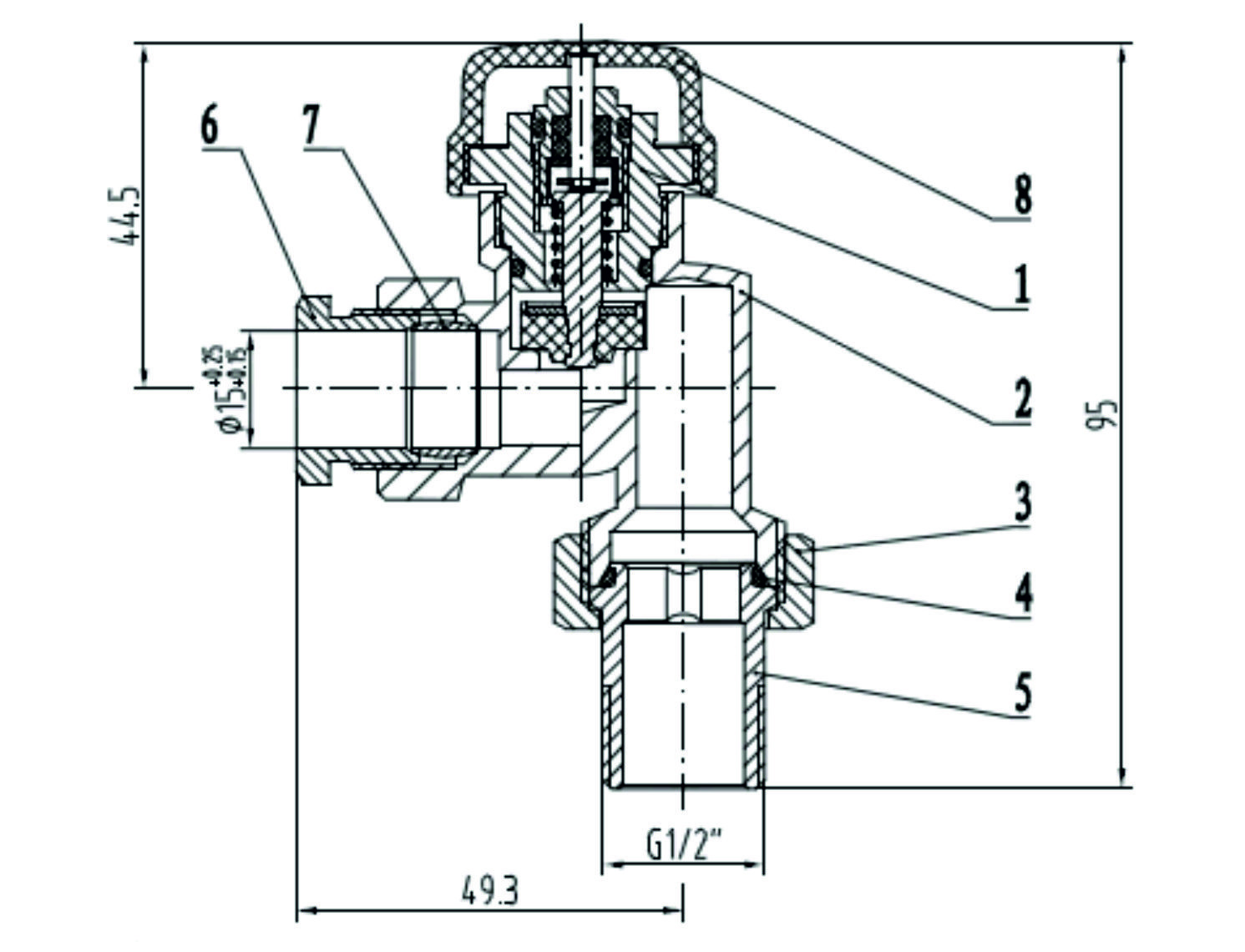 Riko thermostatisch ventiel zonder knop 1/2 axiaal+adaptor