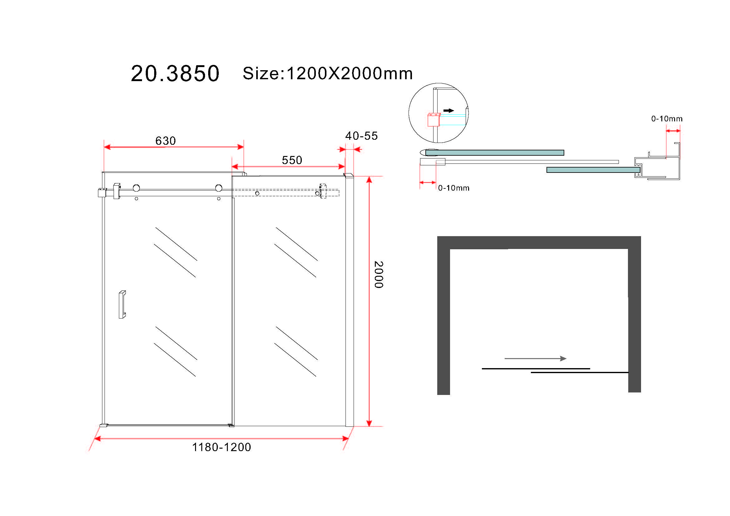 1200mm breed 2000mm hoog.