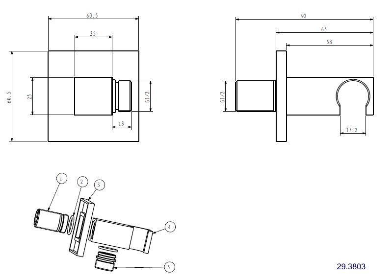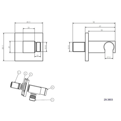 Wiesbaden Wandaansluitbocht met handdouchehouder vierkant 1/2" chroom
