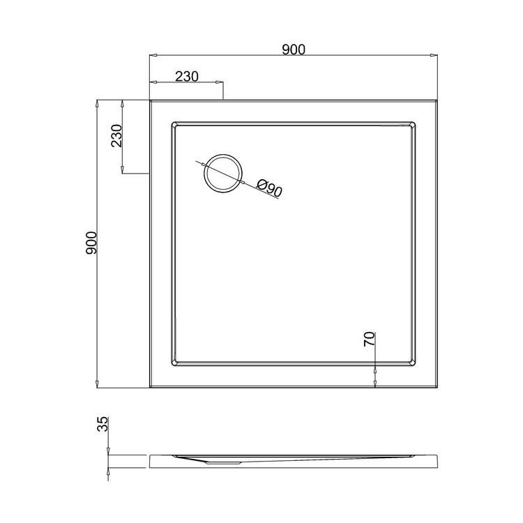 Crosswater Showertray douchebak 90x90x4cm vierkant wit