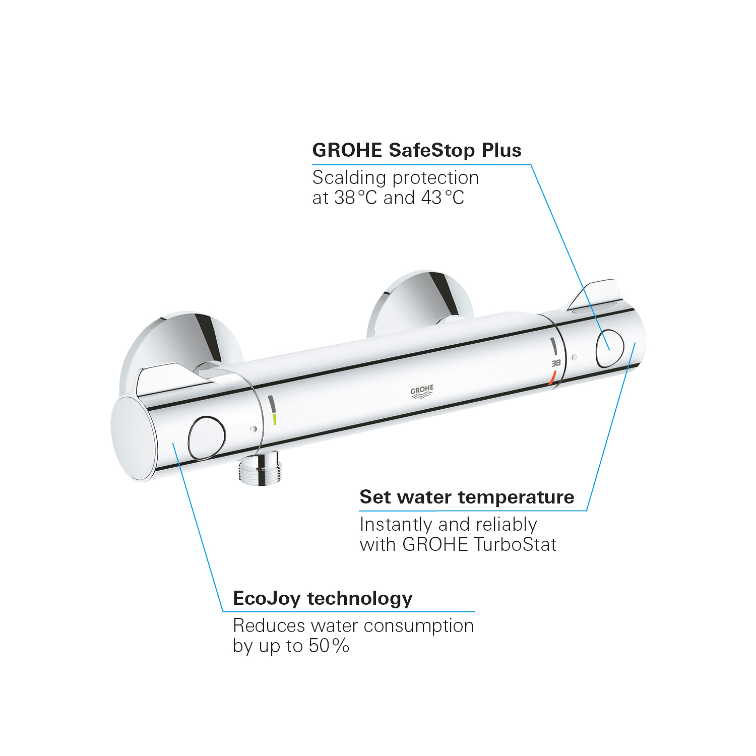GROHE SafeStop Plus optionele temperatuurbegrenzer bij 43°C inbegrepen