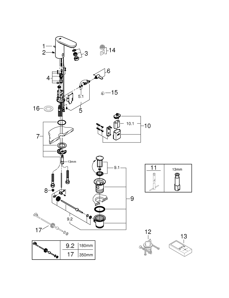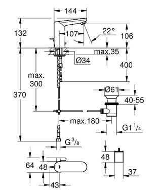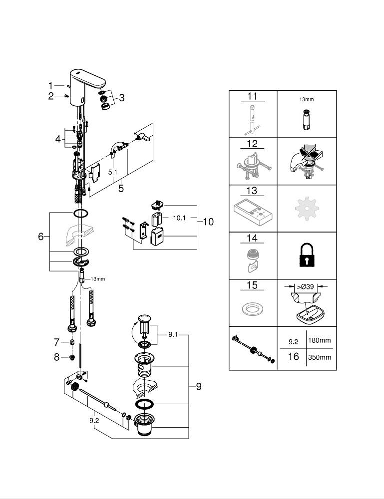 GROHE Eurosmart Cosmopolitan E waterbesparende elektronische wastafelkraan met infrarood met menging met trekwaste met batterij 6V chroom