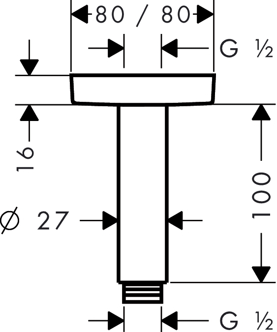 De hansgrohe plafondaansluiting E 10 cm met vierkante rozet is de oplossing voor plafondbevestiging van verscheidene hoofddouches die zorgt voor lang doucheplezier. De stabiele uitvoering in messing met een lengte van 100 mm is ideaal afgestemd op de plafondmontage van grote hoofddouches. Als verlenging gebruikt is de plafondaansluiting de perfecte oplossing voor hoge ruimten - waar het water uit de hoofddouche ook vanaf een hoog plafond in de voorgestelde wellnesstemperatuur op het lichaam komt.
