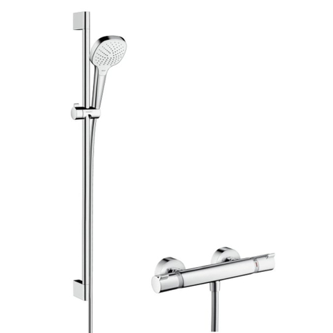 Hansgrohe Croma Select E Doucheset - glijstangset - croma select e vario - handdouche 90cm - Ecostat Comfort douchekraan - thermostatisch - wit/chroom