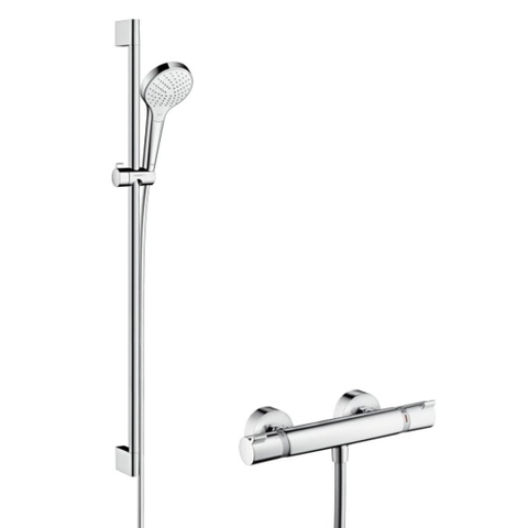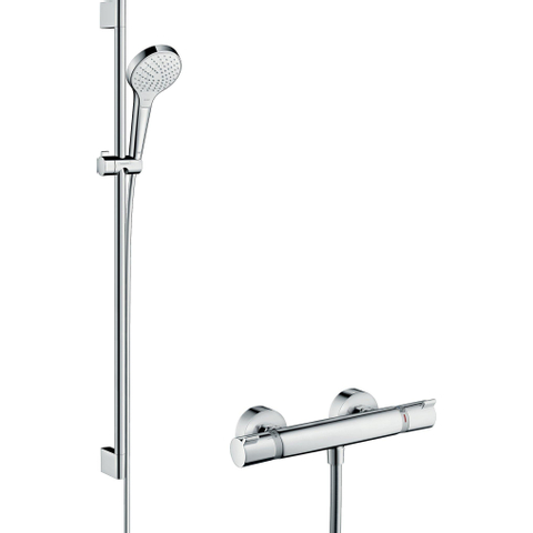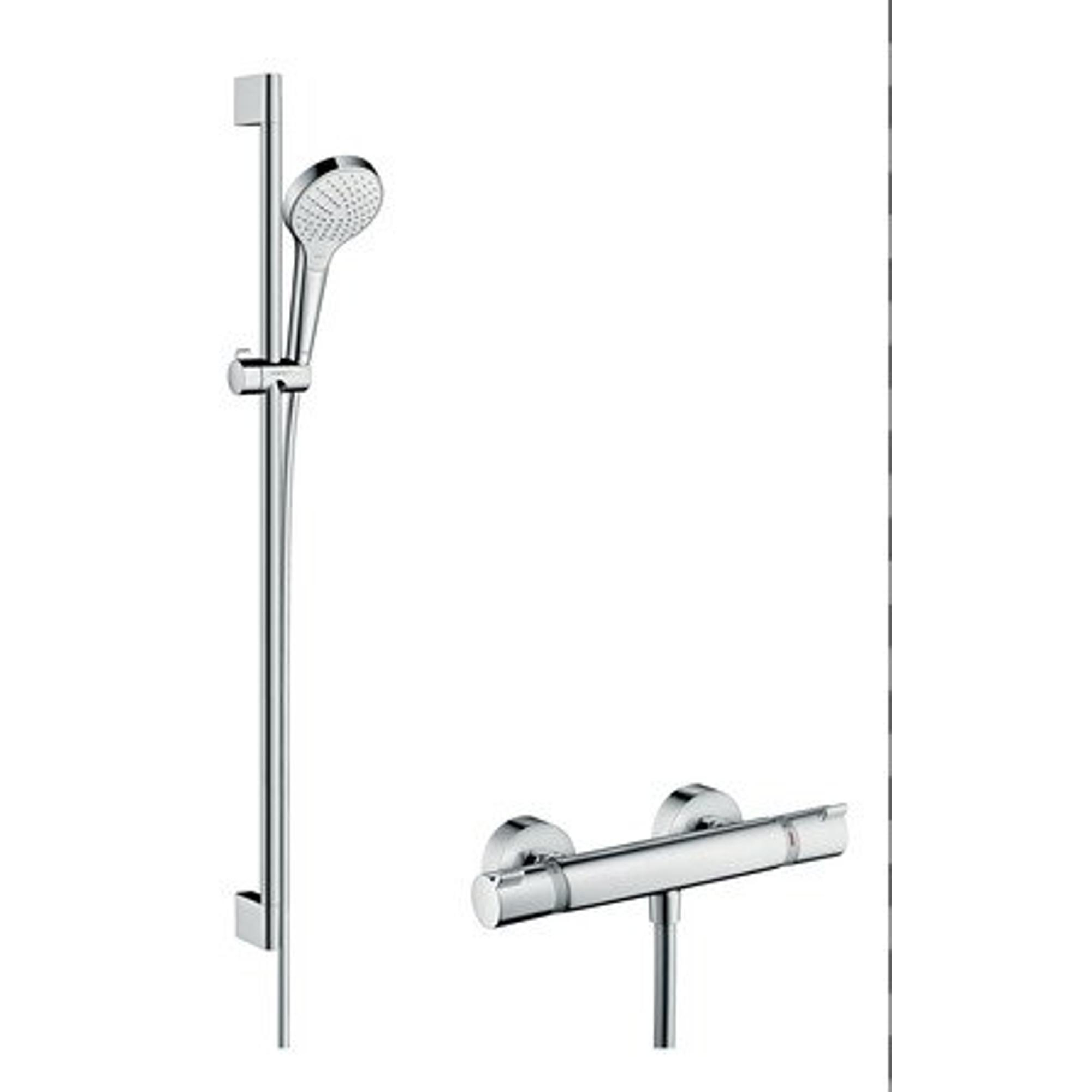Hansgrohe Croma Select S Glijstangset - croma select s vario handdouche 90cm - Ecostat Comfort douchekraan - thermostatisch - wit/chroom