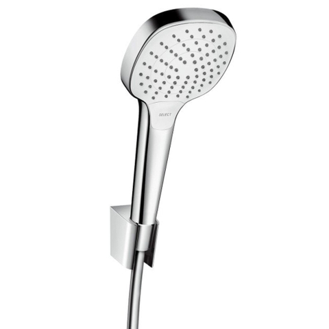 de Porter Set Croma Select E Vario verwend met afwisselend douche dossier en veel comfort. Direct aan de douchekop kunnen de op elkaar afgestemde straalsoorten worden ingesteld. Met een druk op de knop wordt al naargelang de stemming gekozen voor de gewenste douchestraal (select).