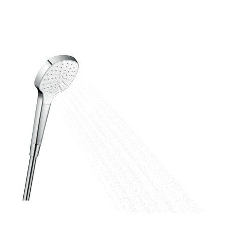 De Hansgrohe Croma Select E 1jet handdouche maakt douchen heerlijk comfortabel. Gebruik de handdouche met afgeronde hoeken als hoofddouche of als aanvulling op bijvoorbeeld een regendouche. De handdouche biedt de krachtige Rain regenstraal waarmee je shampoo snel uit je haar spoelt en die je weer heerlijk verfrist. Dankzij het frisse design in de kleuren wit en chroom en zijn afgeronden hoeken is deze handdouche een echte blikvanger in je badkamer.