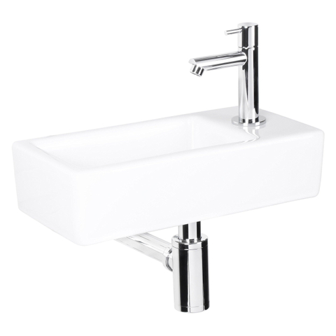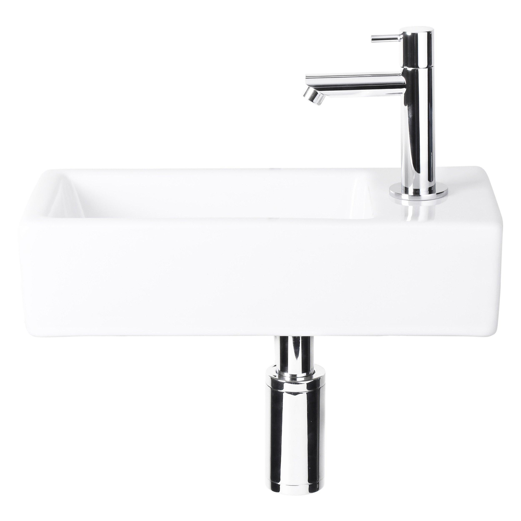 Differnz fonteinset - 37.5x18.5x9.5cm - Rechthoek - 1 kraangat - Chroom - Keramiek Wit