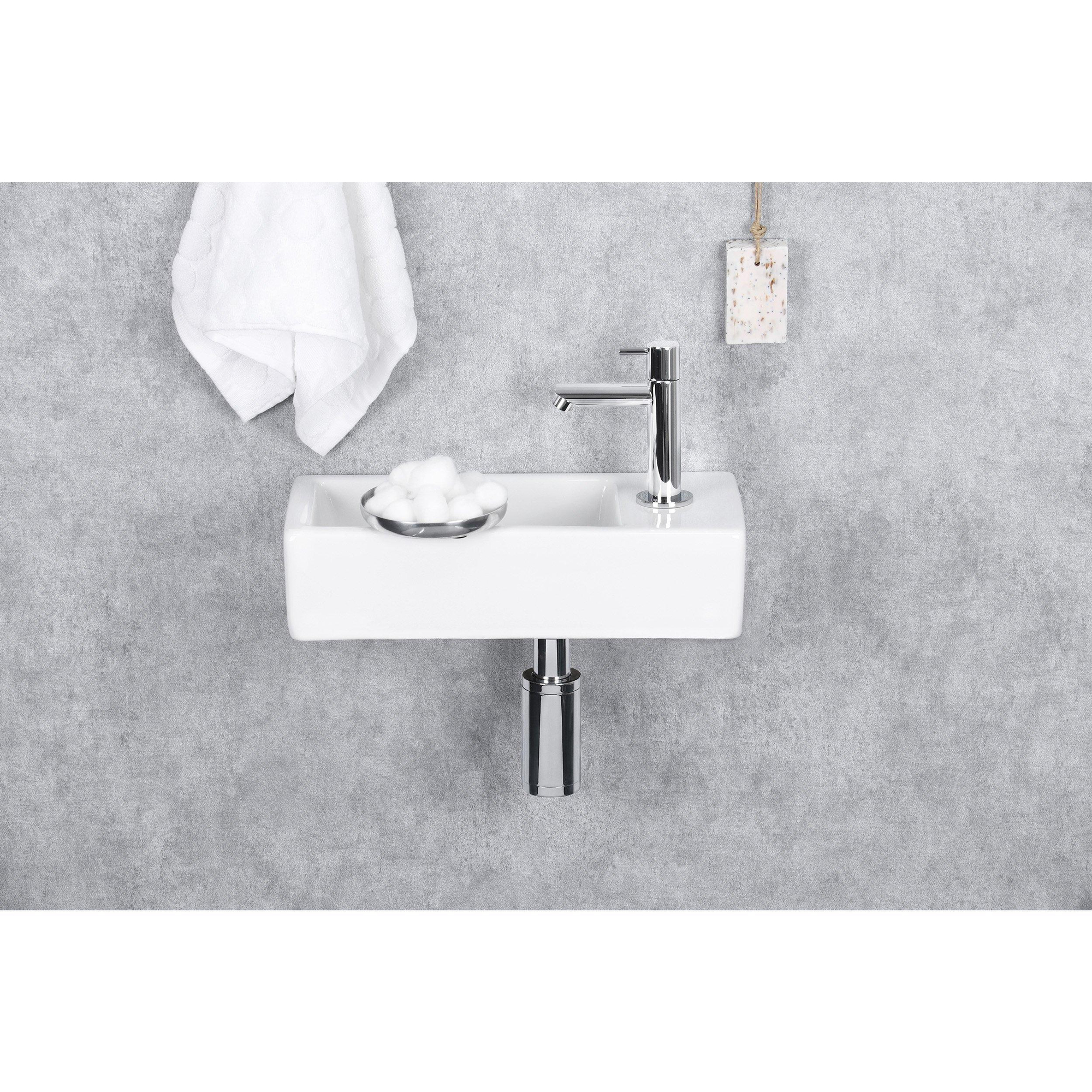 De Differnz fonteinset straalt elegantie uit in zijn eenvoud. De rechthoekige vorm en de glanzende chroomafwerking geven een luxe uitstraling aan elke ruimte. Het helder witte keramiek voegt een vleugje frisheid toe en zorgt voor een tijdloze esthetiek. Of je nu een moderne of klassieke badkamerstijl hebt, dit fonteinset past perfect bij elke inrichting en voegt een vleugje verfijning toe aan de ruimte.