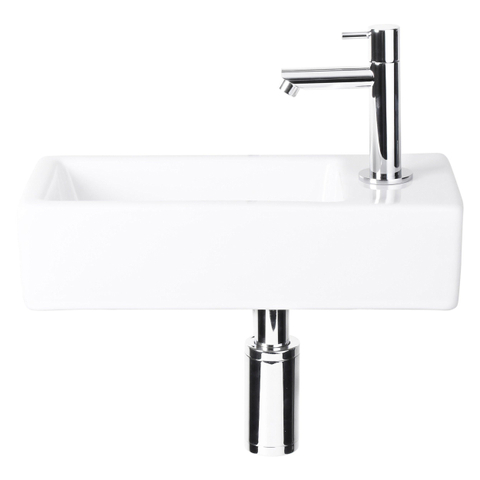 Differnz Helios fonteinset - 37.5x18.5x9.5cm - Rechthoek - 1 kraangat rechts - Recht chromen kraan - Keramiek Wit