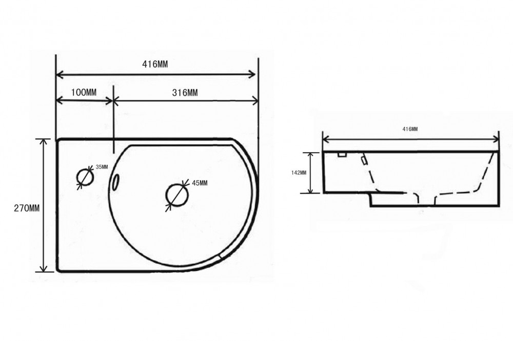 Differnz fonteinset - 41x27x14cm - Rechthoek - 1 kraangat links - Chroom - Keramiek Wit