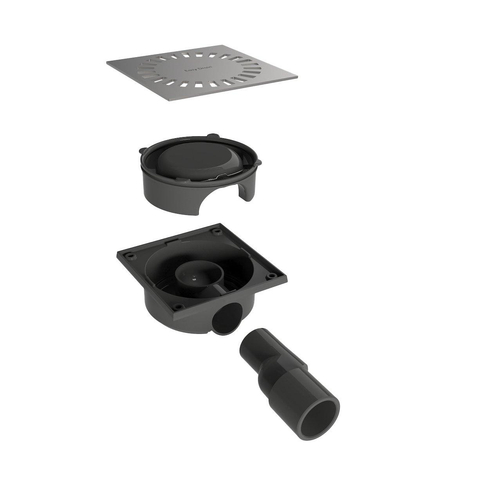 Easy Drain Aqua Compact vloerput met ABS sifonhuis RVS rooster en zijuitlaat 15x15cm inbouwdiepte 60mm incl. verstelb. uitloop Ø50/Ø40m