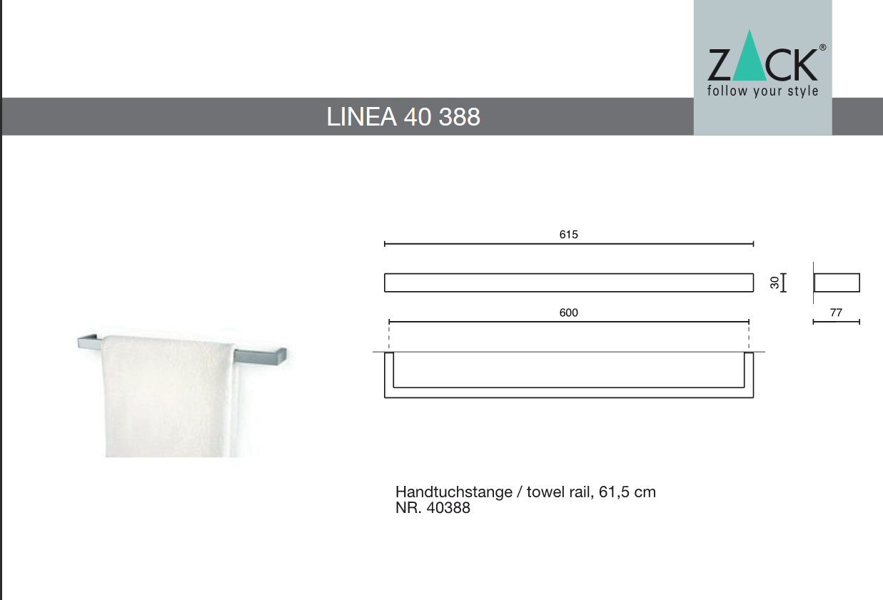 Zack Linea Handdoekstang L 61.5X3x7.7cm Mat Gesatineerd RVS