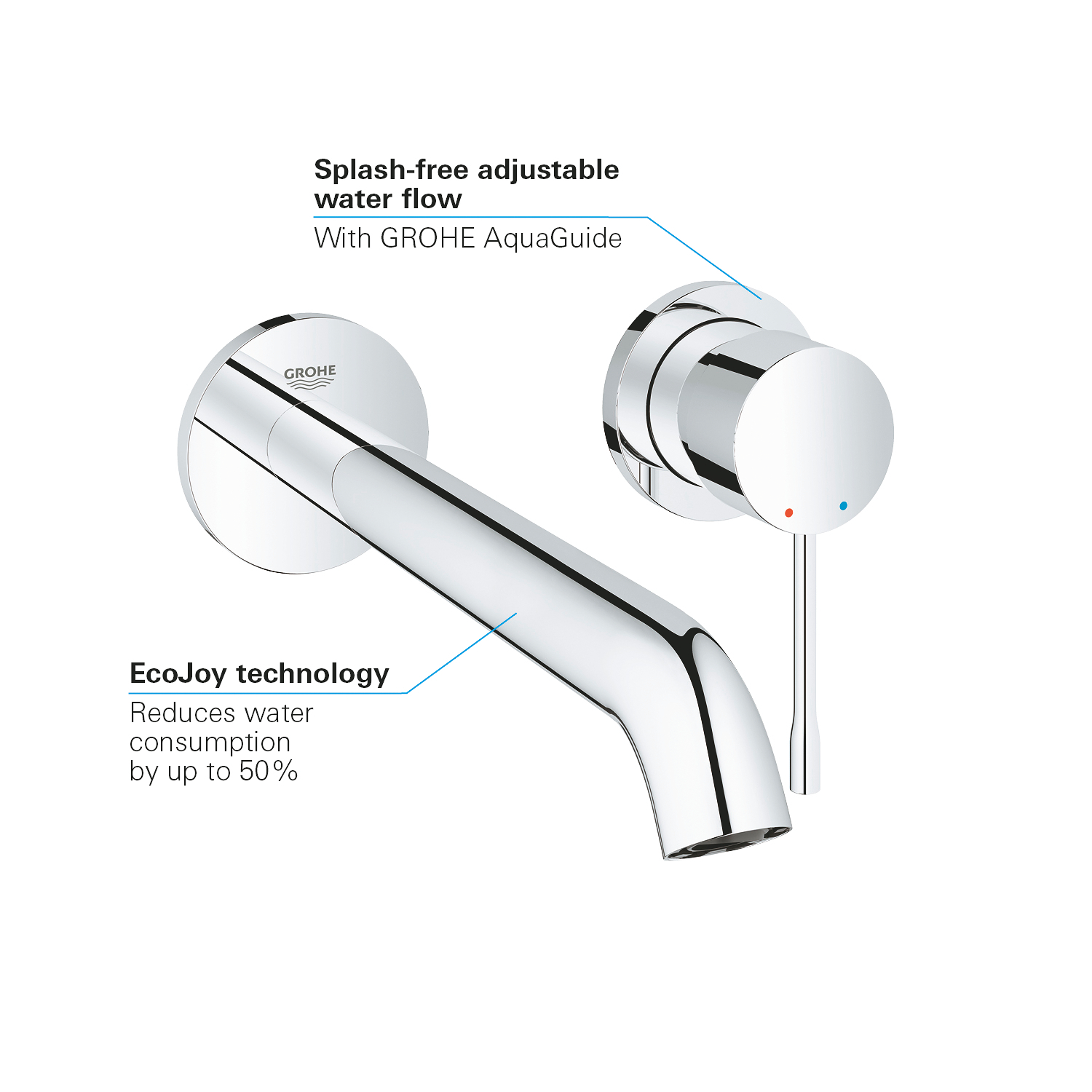 GROHE Essence New tweegats wastafelkraan met 230 mm uitloop Modern, minimalistisch, maar warm en tastbaar: de GROHE Essence kranen leveren uitzonderlijke prestaties en geven je de mogelijkheid om je badkamer op jouw smaak af te stemmen. De GROHE Essence serie bestaat uit een uitgebreid aanbod aan maten en functies en biedt jou alle flexibiliteit om een harmonische badkamer te creëren, terwijl de geavanceerde technologie aan de binnenkant betrouwbare en onovertroffen prestaties leveren..