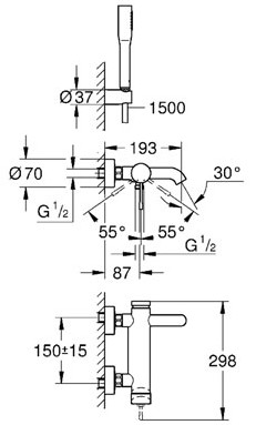GROHE Essence New badkraan met omstel en koppelingen met douchegarnituur chroom