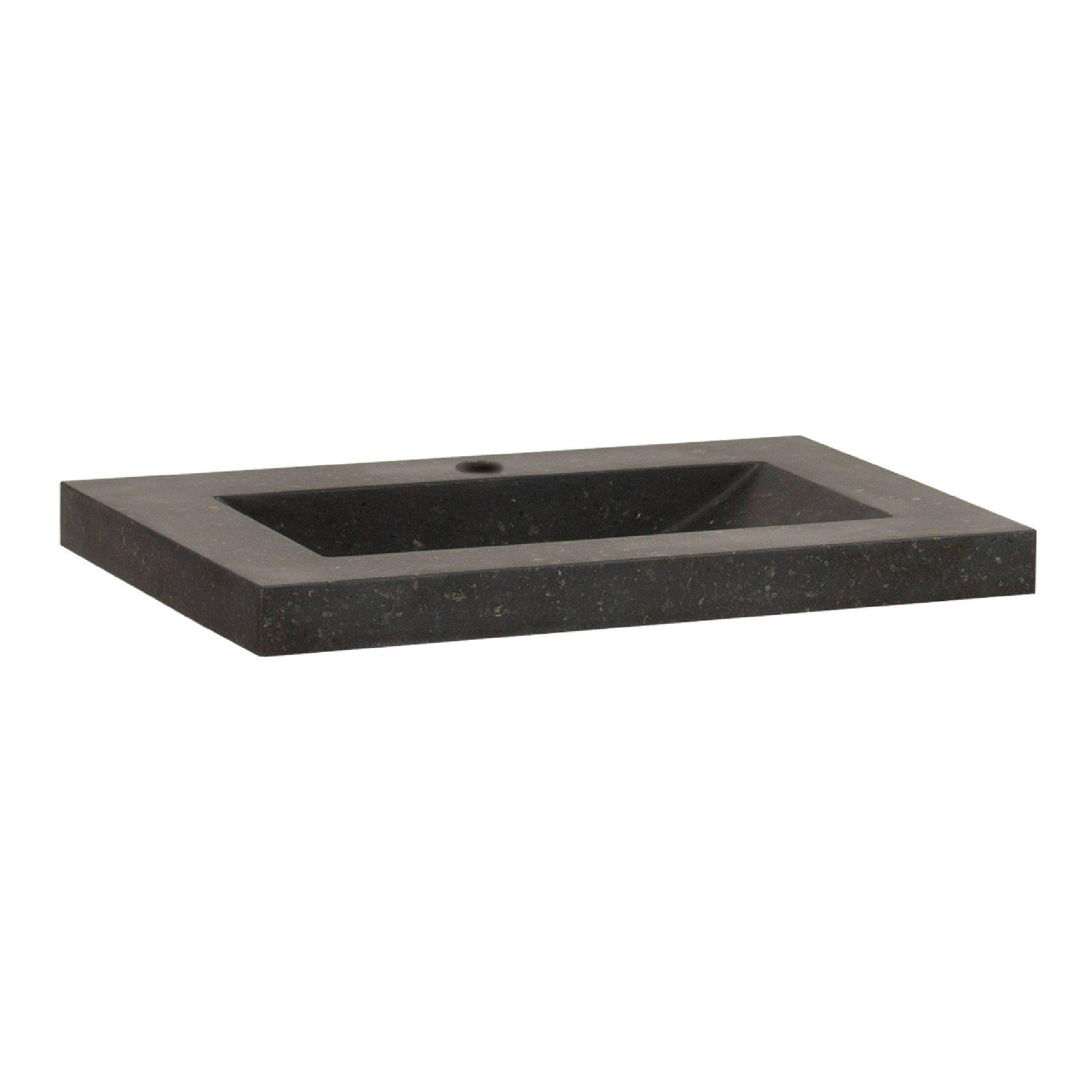 BRAUER Magma wastafel ondiep 60x40x5cm - 1 wasbak - 1 kraangat - natuursteen - basalt antraciet