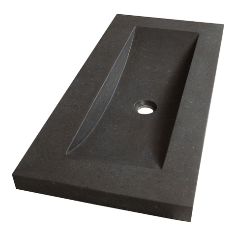 BRAUER Magma wastafel ondiep 80x40x5cm - 1 wasbak - 0 kraangaten - natuursteen - basalt antraciet