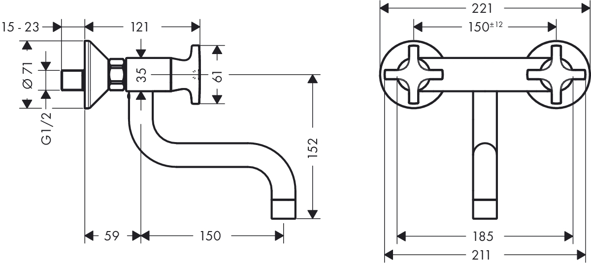Hansgrohe Logis classic wandkeukenkraan met onder uitloop chroom