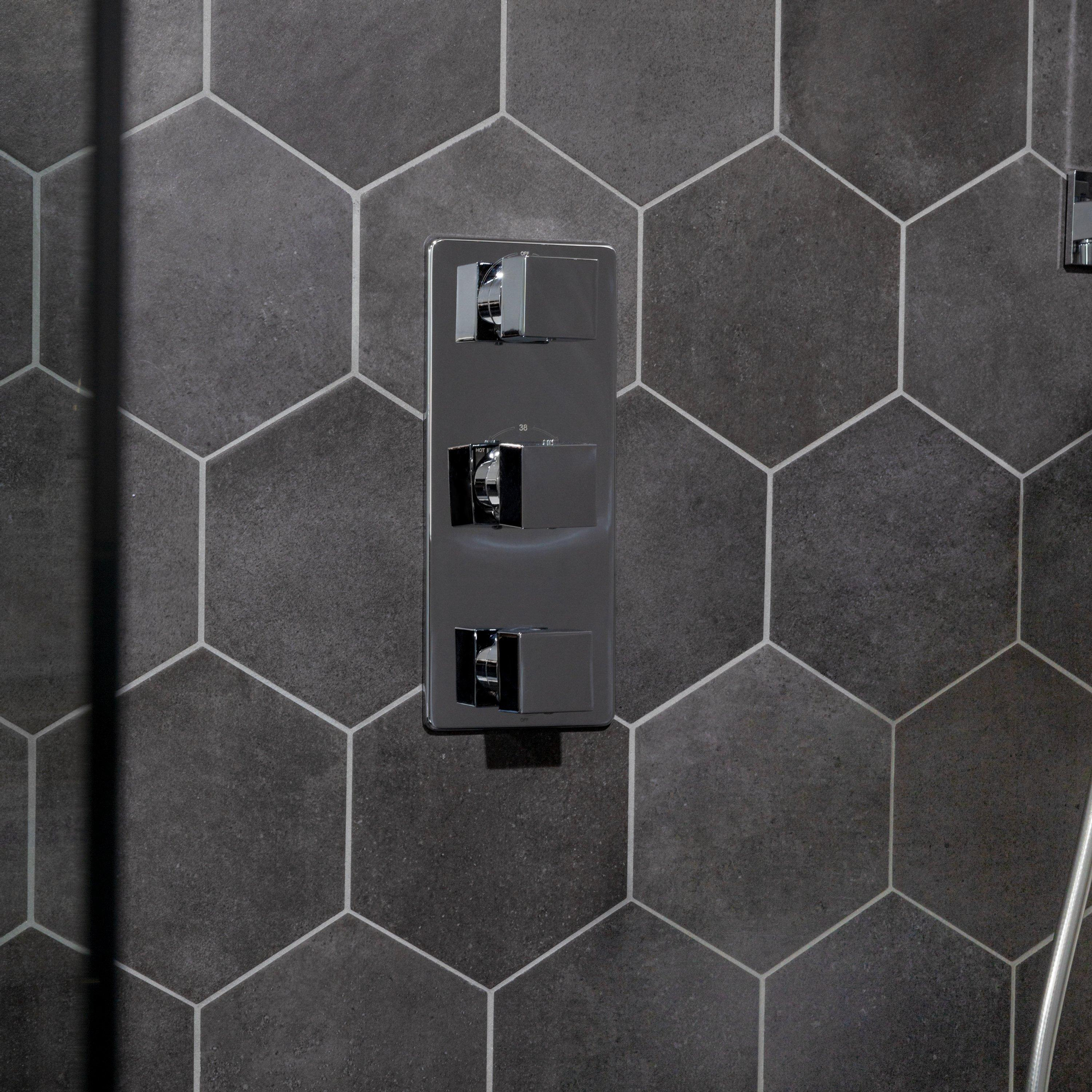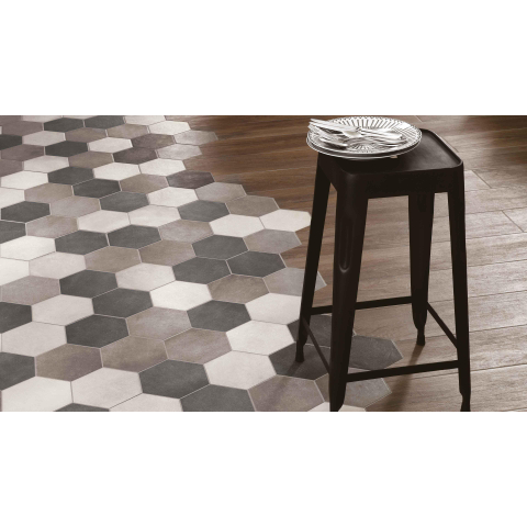 De Ragno Rewind Vloer- en wandtegel hexagon 18x21cm 9.5mm R9 porcellanato Peltro is een prachtige toevoeging aan elke badkamer of keuken. Met zijn unieke hexagonale vorm en elegante afwerking brengt deze tegel een vleugje stijl en verfijning in de ruimte. Gemaakt van hoogwaardig porcellanato, straalt deze tegel duurzaamheid en klasse uit. Of het nu op de vloer of aan de wand is, deze tegel creëert een tijdloze uitstraling die moeiteloos past bij verschillende interieurstijlen.