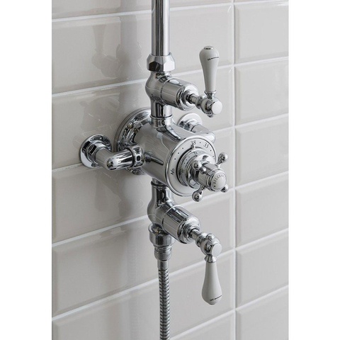 Geniet van ultieme ontspanning en doucheplezier met de Crosswater Belgravia regendouche. De met chroom afgewerkte installatie wordt aan de muur bevestigd en bevat een thermostatische kraan, hoofddouche, handdouche, glijstang, douchegarnituur en slang. De regendouche is daarnaast geschikt voor alle waterdruksystemen en vereist minimaal 1.0 bar. De twee hendels bieden voldoende grip en met de wit geglazuurde keramische afwerking stel je altijd de juiste temperatuur in en regel je het watervolume.