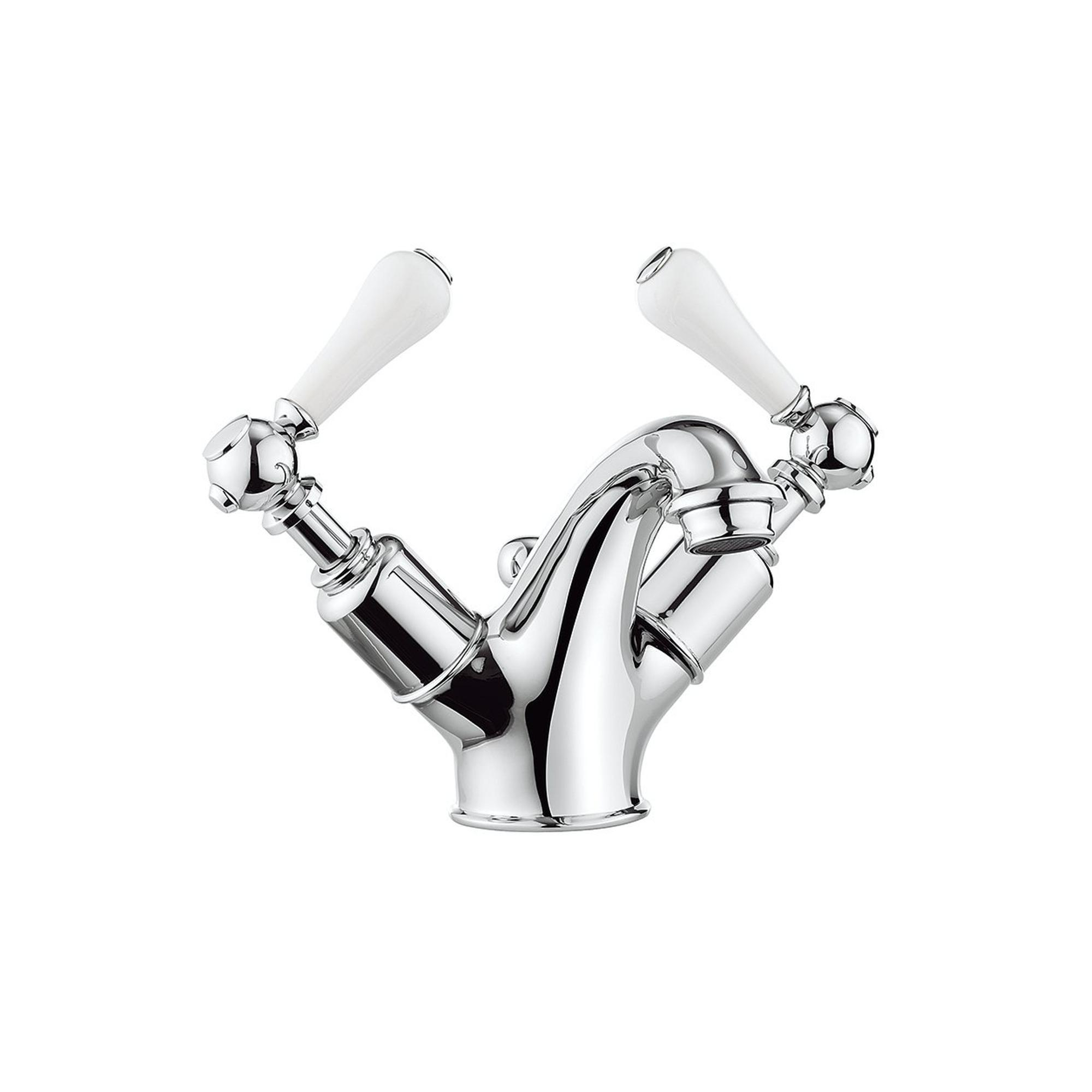 Crosswater Belgravia wastafelkraan witte grepen met waste chroom