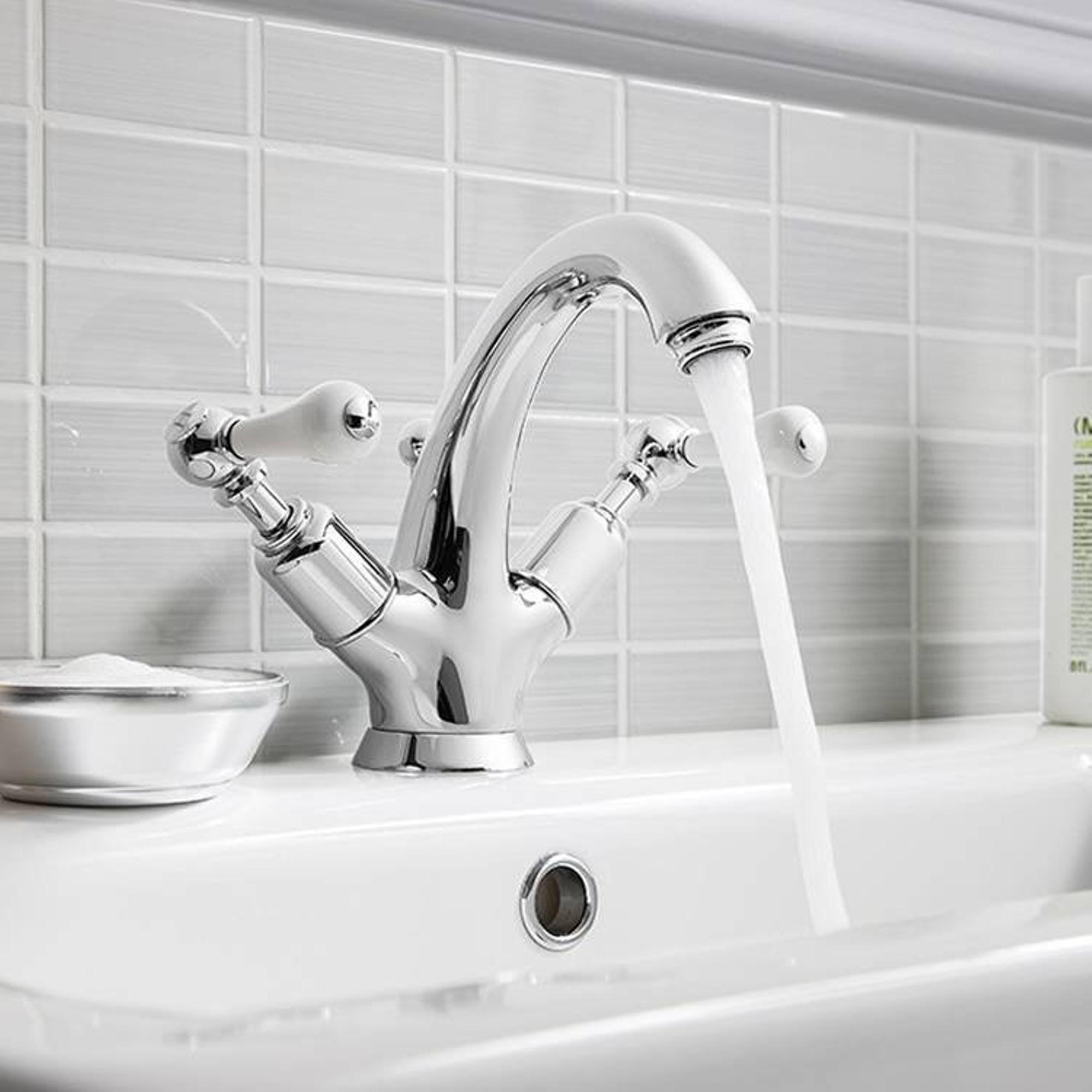 Crosswater Belgravia wastafelkraan witte grepen medium met waste chroom