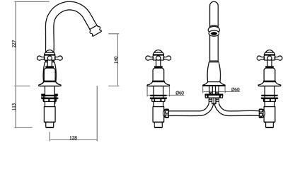 Crosswater Belgravia Wastafelkraan - hoog - 3 gats - kruisgreep - chroom