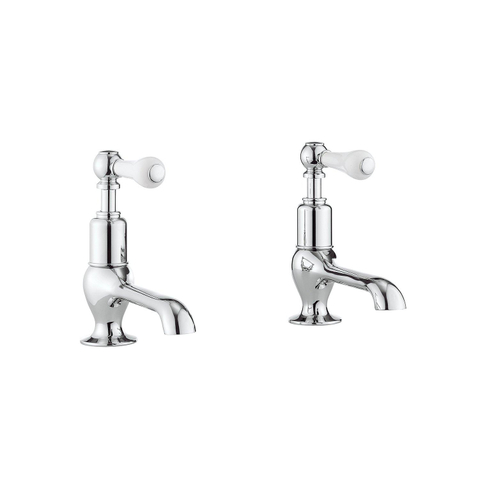 Crosswater Belgravia wastafelkranen koud en warm witte grepen chroom