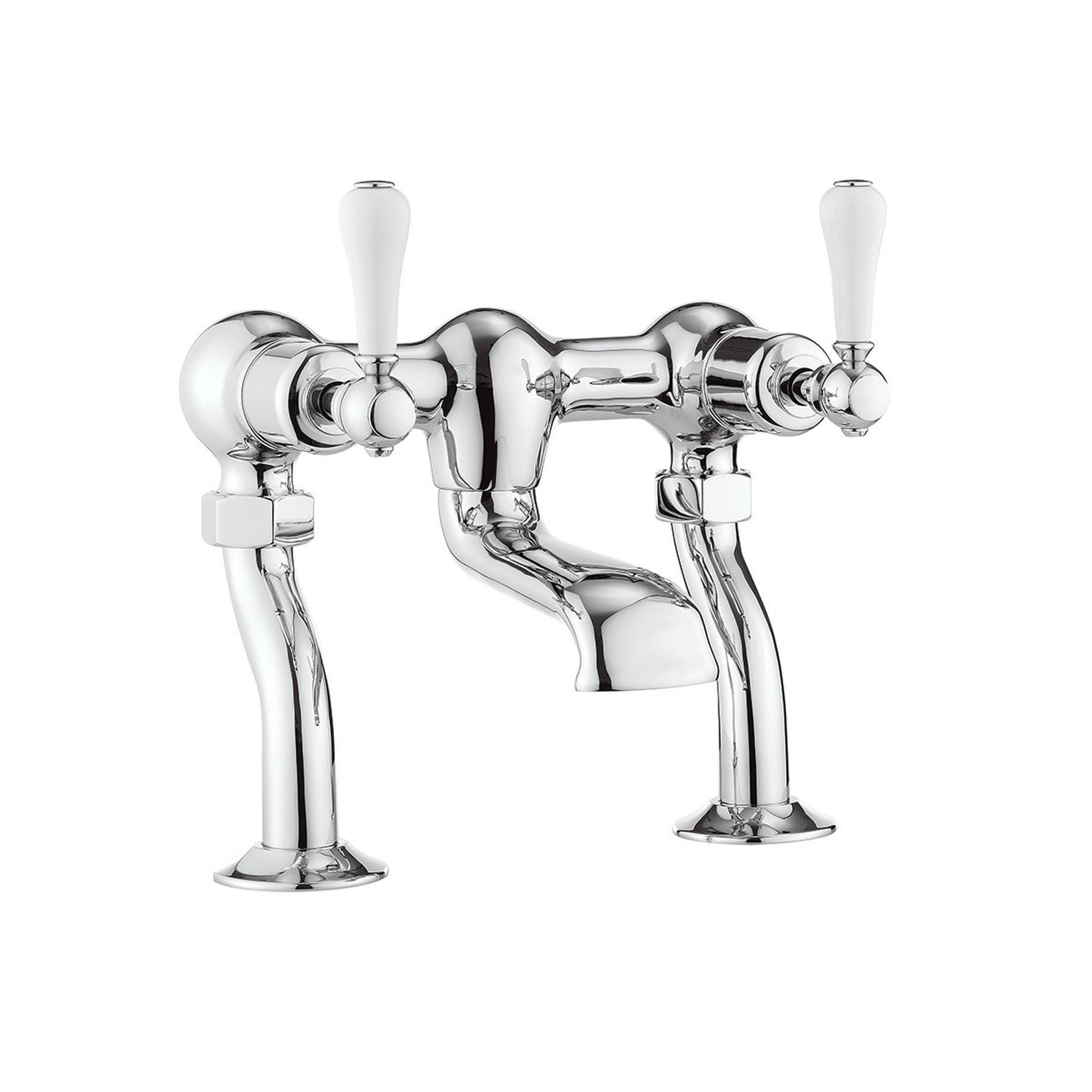 Crosswater Belgravia staande badkraan 2 gats witte grepen chroom