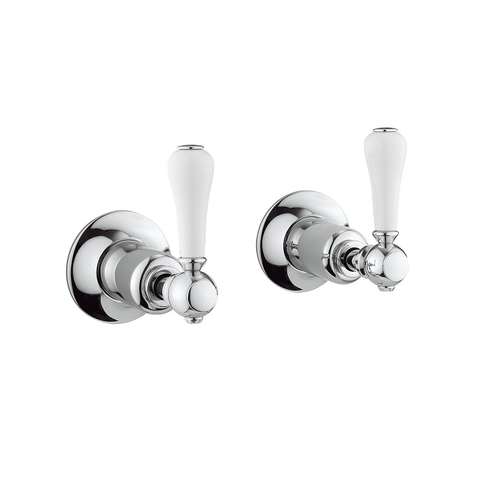 Crosswater Belgravia stopkranen inbouw koud en warm witte grepen chroom