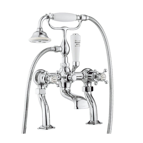 Crosswater Belgravia staande badkraan 2 gats met handdoucheset kruisgreep chroom