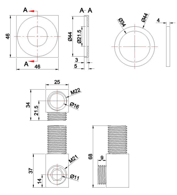 Crosswater Square wandaansluitbocht chroom