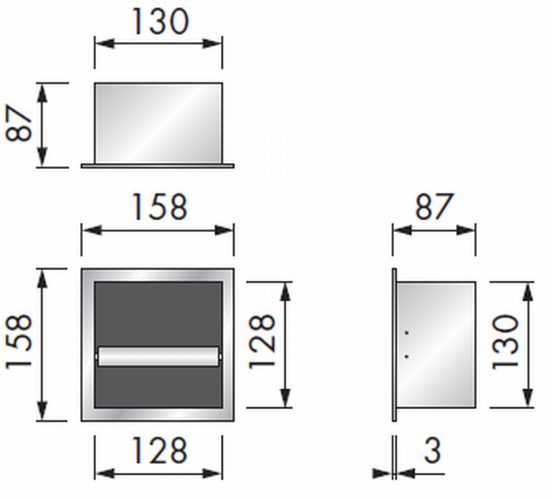 Looox Closed closetrolhouder - inbouw - vierkant - rvs geborsteld