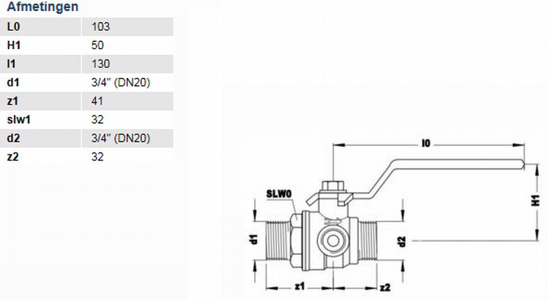 | Uitwendige buisdiameter aansluiting 1 | 22 mm |