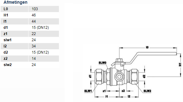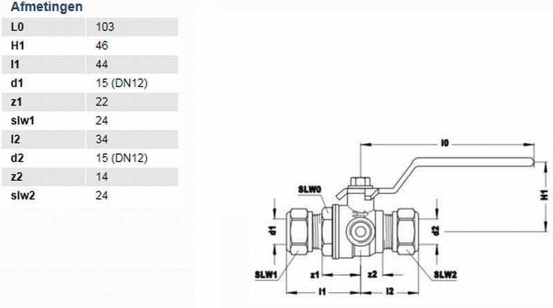 | Uitwendige buisdiameter aansluiting 1 | 15 mm |