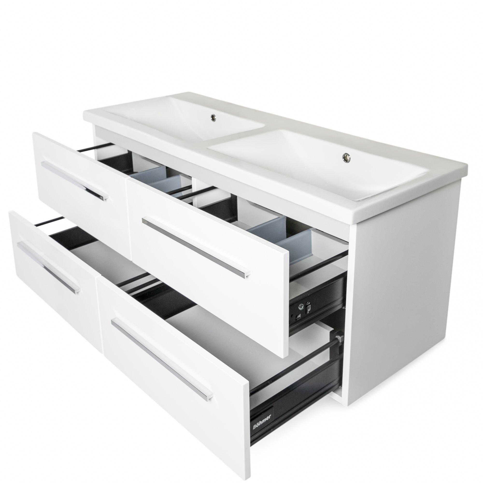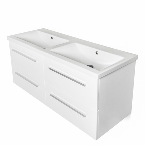 Saniclass Bari Meubelwastafel - 120x47x3.5cm - overloop - 2 wasbakken - links rechts 2 kraangaten - keramiek - wit