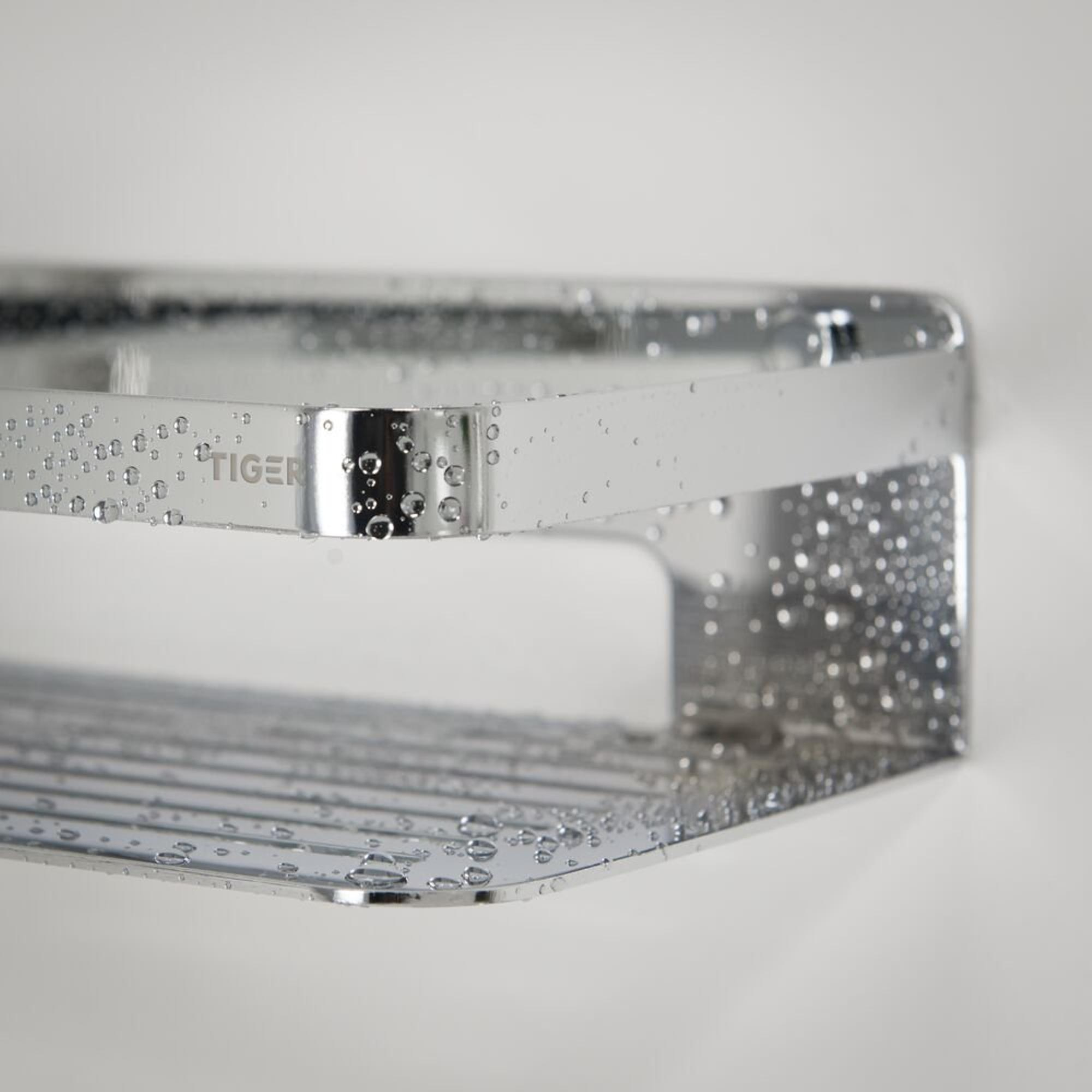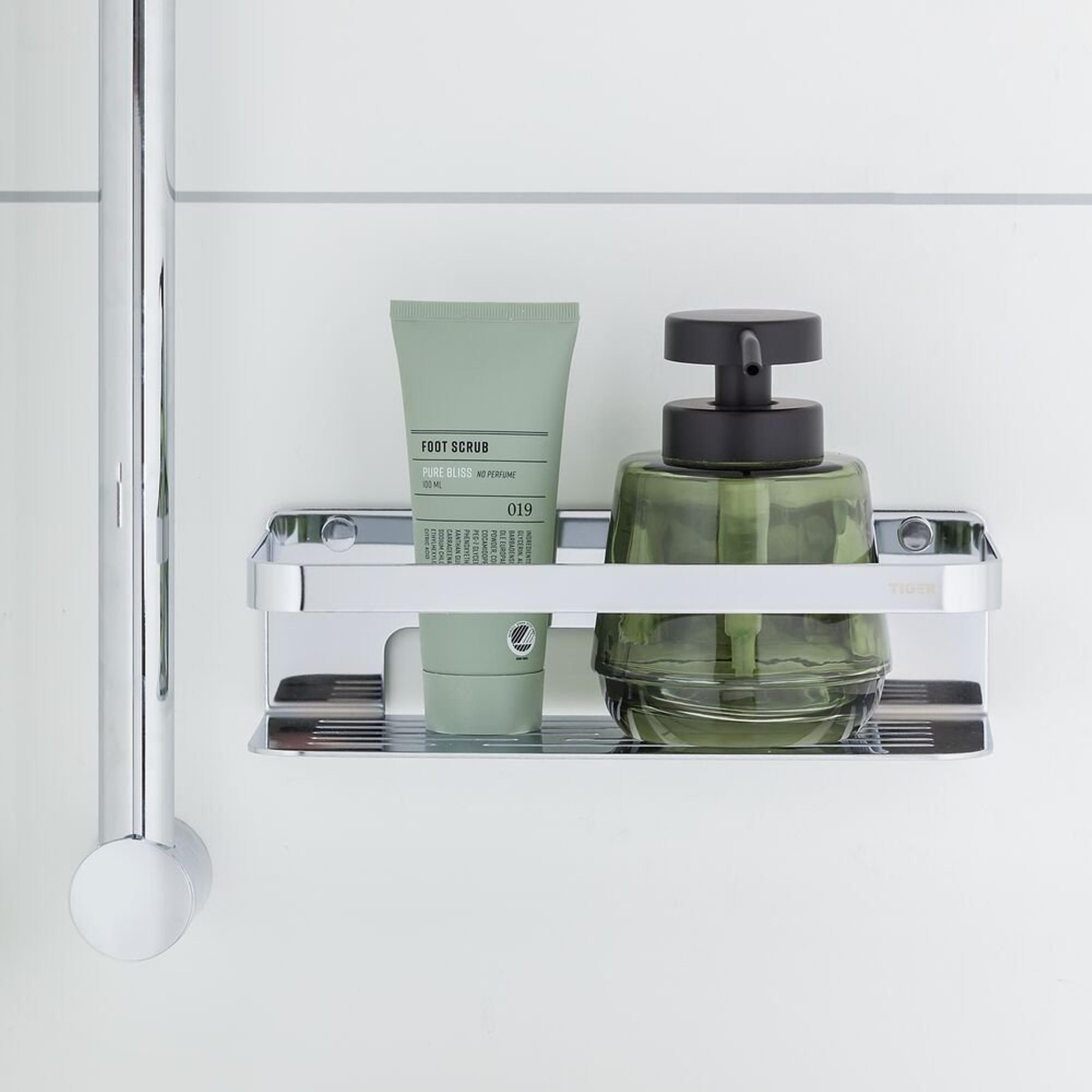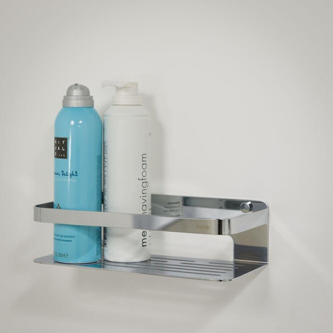 Houd je badkamer licht en opgeruimd met de handige Tiger Caddy douchemand. Deze Caddy is zo functioneel als zijn naam. De vlakke bodem met hoge rand zorgen ervoor dat de producten stevig in het rek blijven staan en de afwateringssleuven laten het water met gemak weglopen. De zachte afgewerkte hoeken zorgen ervoor dat je zonder gevaar voor eigen vingers het mandje schoon kan maken. Deze mand is de Houdini onder de badkameraccessoires, waarbij een opgeruimde badkamer geen illusie blijft. Wek ook jouw badkamer goals tot leven met deze moderne variant in chroom.
