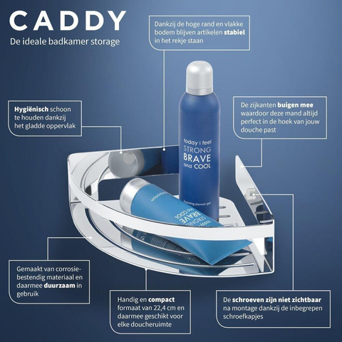 Geef je badkamer een snelle en slimme update met de handige Tiger Caddy. Hij is jouw persoonlijke assistent in de badkamer en zorgt onmiddellijk voor een gevoel van ruimtelijkheid en ontspanning. De vlakke bodem met hoge rand zorgen ervoor dat de producten stevig in het rek blijven staan en de flexibele zijkanten zorgen ervoor dat hij in iedere hoek past. De zachte afgewerkte hoeken zorgen ervoor dat je zonder gevaar voor eigen vingers, het mandje schoon kan maken. Deze mand in de kleur chroom is het perfecte maatje voor jouw ultieme badkamergeluk.