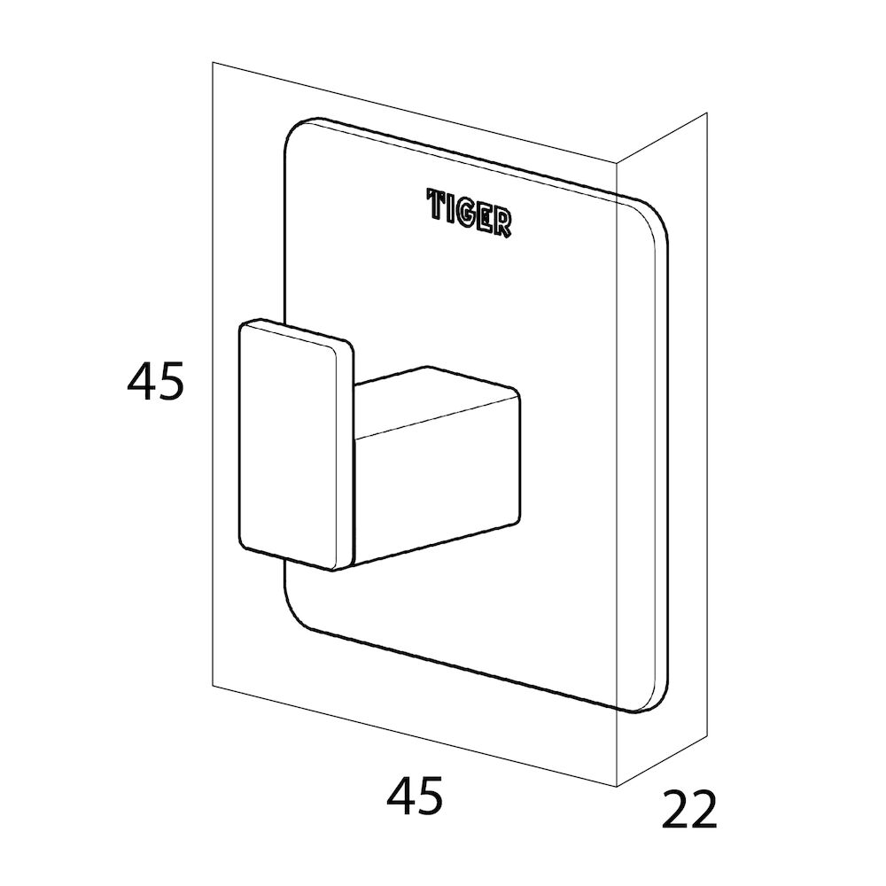 De Tiger haak Pull Square is uitgevoerd in geborsteld RVS. De zelfklevende haak is eenvoudig aan te brengen op harde, stevige ondergronden in bijvoorbeeld de badkamer of de keuken.